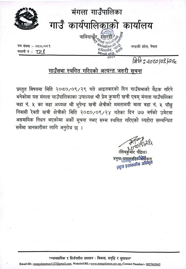 गाउँसभा स्थगित गरिएको अत्यन्त जरुरी सूचना ।