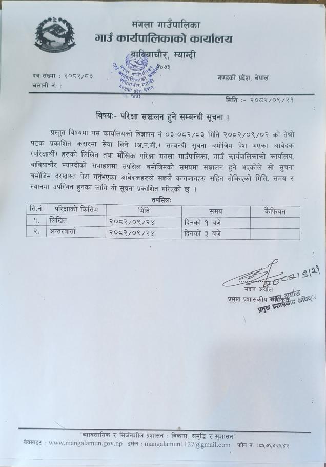 » परिक्षा सञ्चालन हुने सम्बन्धी सूचना।