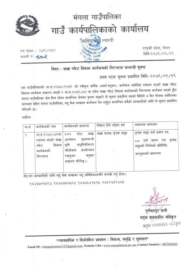 » बाख्रा पकेट विकास कार्यक्रमको निरन्तरता सम्बन्धी सूचना !!!