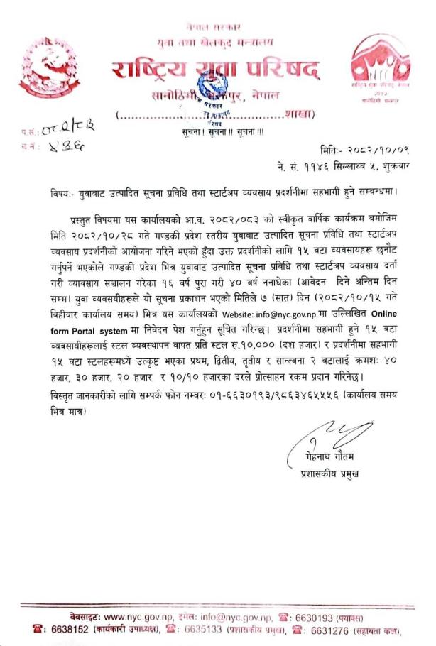 युवाबाट उत्पादित सूचना प्रविधि तथा स्टार्टअप व्यवसाय प्रदर्शनीमा सहभागी हुने सम्बन्धमा