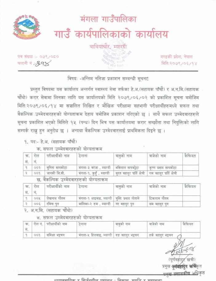 अन्तिम नतिजा प्रकाशन सम्बन्धी सूचना !!: