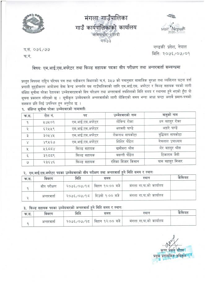 » एम.आई.एस.अपरेटर तथा फिल्ड सहायक पदका सीप परीक्षण तथा अन्तरवार्ता सम्बन्धमा