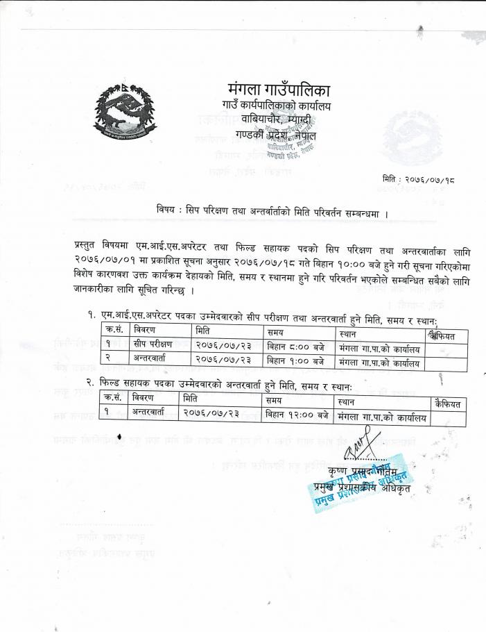 » एम.आई.एस.अपरेटर तथा फिल्ड सहायक पदका सीप परीक्षण तथा अन्तरवार्ता सम्बन्धमा