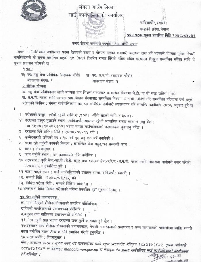 करार सेवामा कर्मचारी पदपूर्ति गर्ने सम्बन्धि सूचना !!!