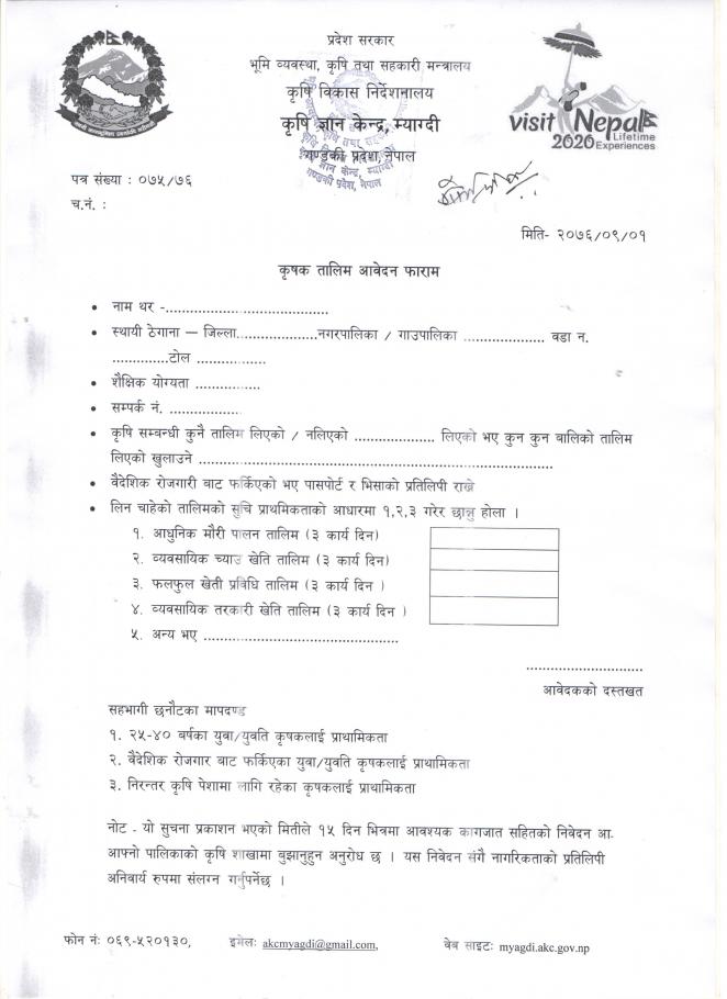 कृषक तालिम आवेदन फाराम भर्ने सम्बन्धी सूचना !!!
