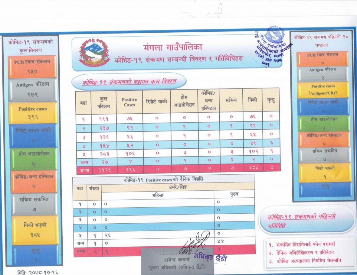कोभिड १९ अद्यावधिक विवरण (२०७८-१०-१६)