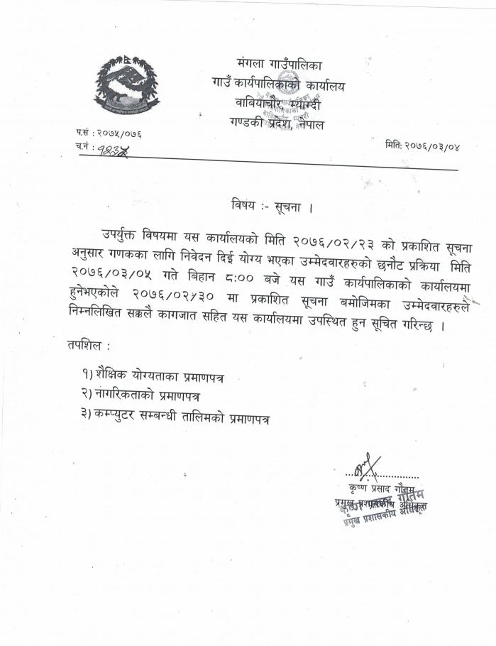 गणक पदमा short list भएका उम्मेदवारहरको प्रयोगात्मक परिक्षा तथा अन्तरवार्ता सम्बन्धि सूचना