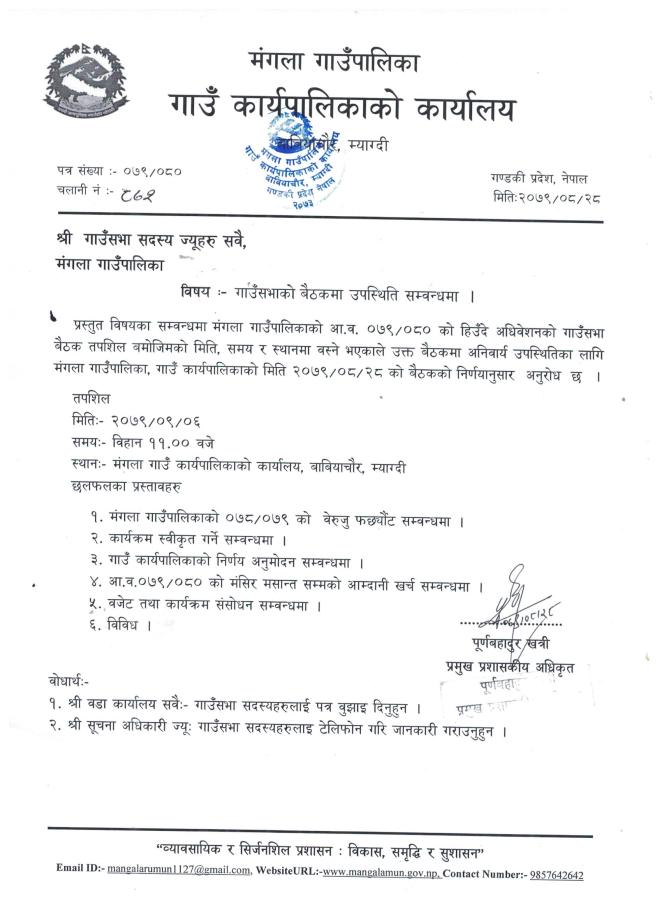 » गाउँसभाको बैठकमा उपस्थिति सम्बन्धमा (श्री सम्पूर्ण गाउँसभा सदस्य)