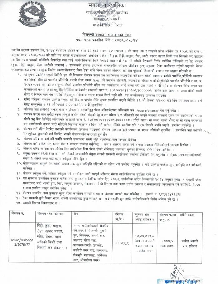 » ढुंगा गिट्टी बालुवा रोडाको सिलबन्दी दरभाउ पत्र आह्वान सम्बन्धि सूचना