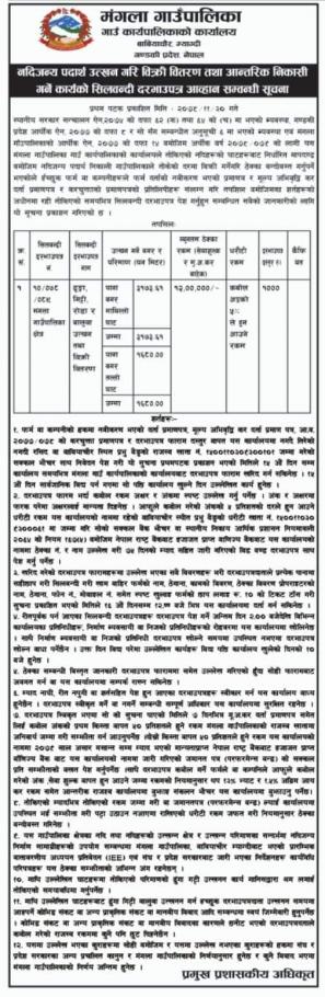 नदिजन्य पदार्थ उत्खन गरि विक्री वितरण तथा आन्तरिक निकासी गर्ने कार्यको शिलवन्दी दरभाउपत्र आव्हान सम्बन्धी सूचना