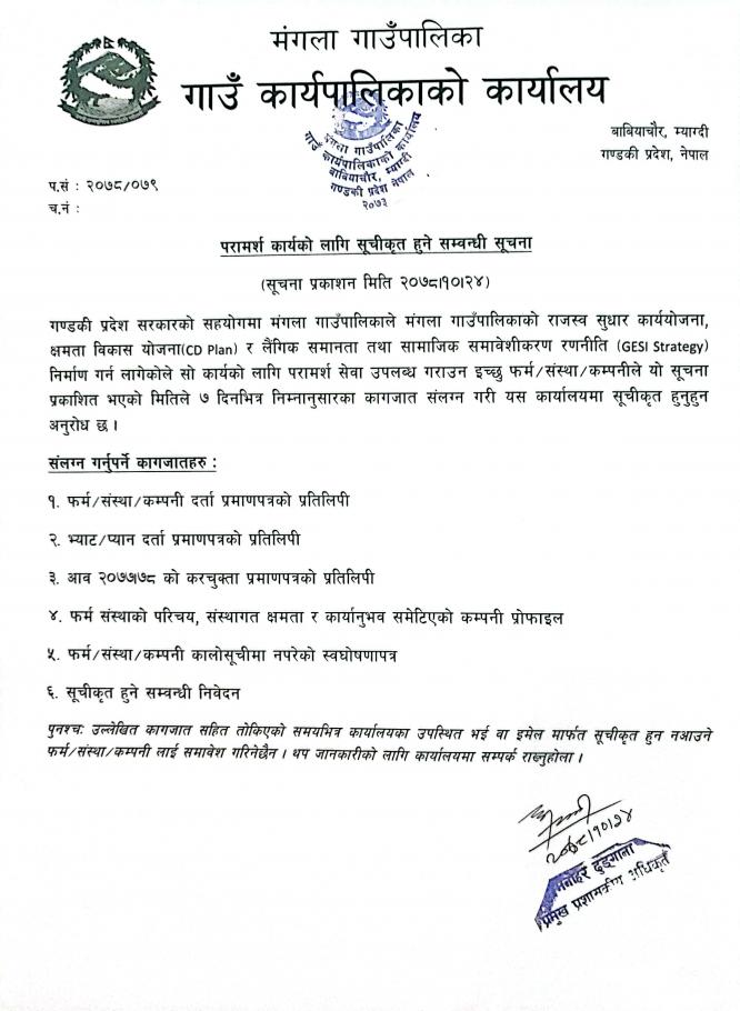परामर्श कार्यको लागि सूचीकृत हुने सम्बन्धी सूचना !!!