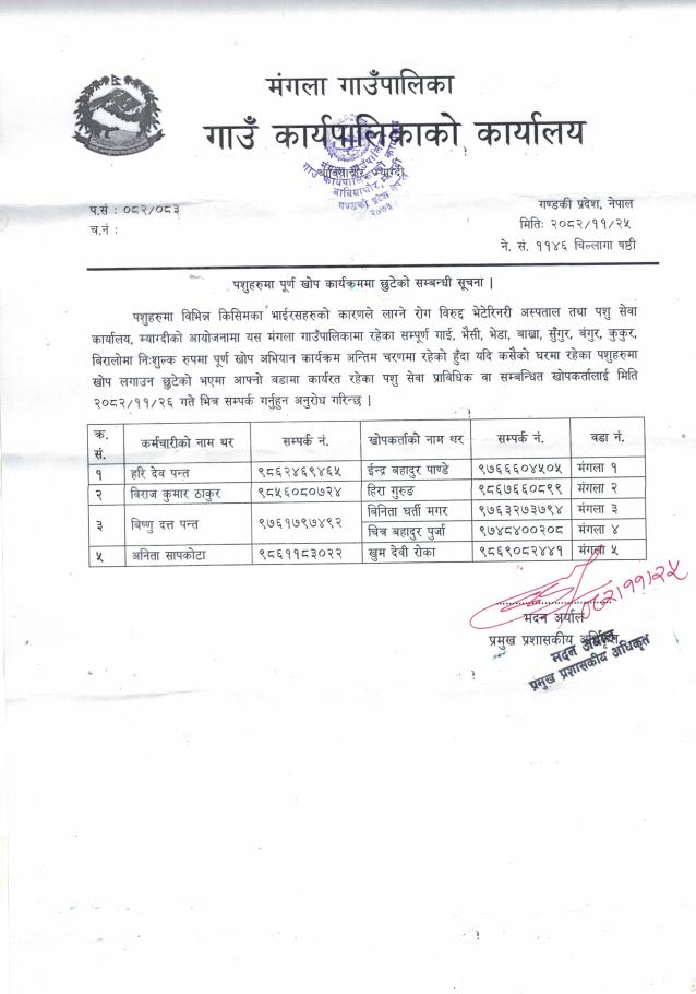 » पशुहरूमा पूर्ण खोप कार्यक्रममा छुटेको सम्बन्धी सूचना ।