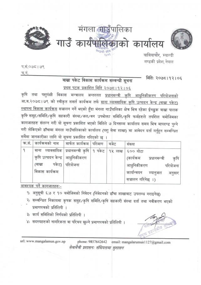 बाख्रा पकेट विकास कार्यक्रम सम्बन्धी सूचना !!!