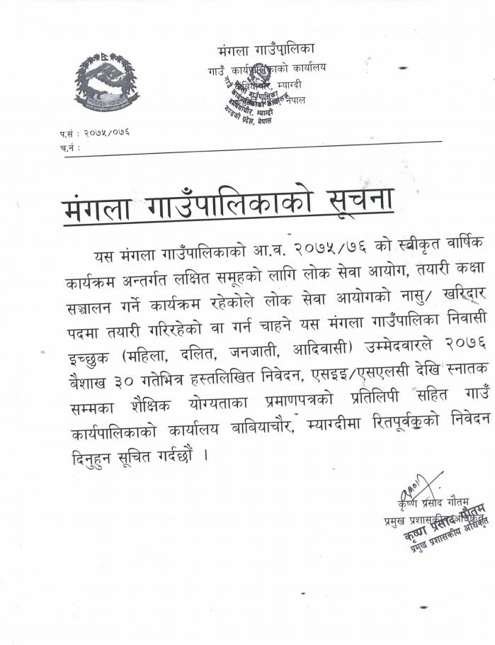 » मंगला गाउँपालिकाको लोक सेवा तयारी कक्षा सञ्चालन सम्बन्धि सूचना !!!