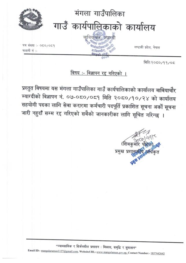 » विज्ञापन रद्द गरिएको सम्बन्धमा (कार्यालय सहयोगी)