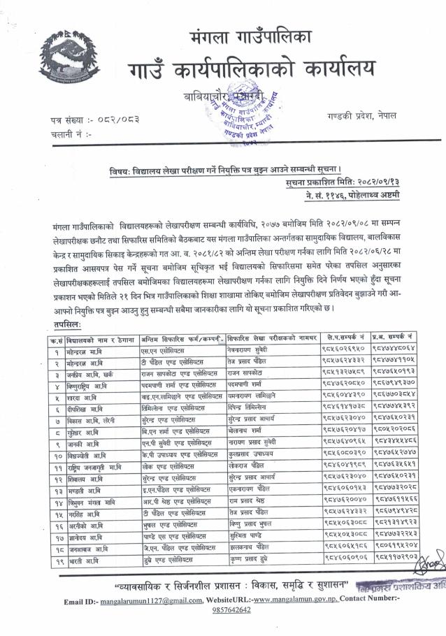 विद्यालय लेखा परीक्षण गर्ने नियुक्ति पत्र बुझ्न आउने सम्बन्धी सूचना ।