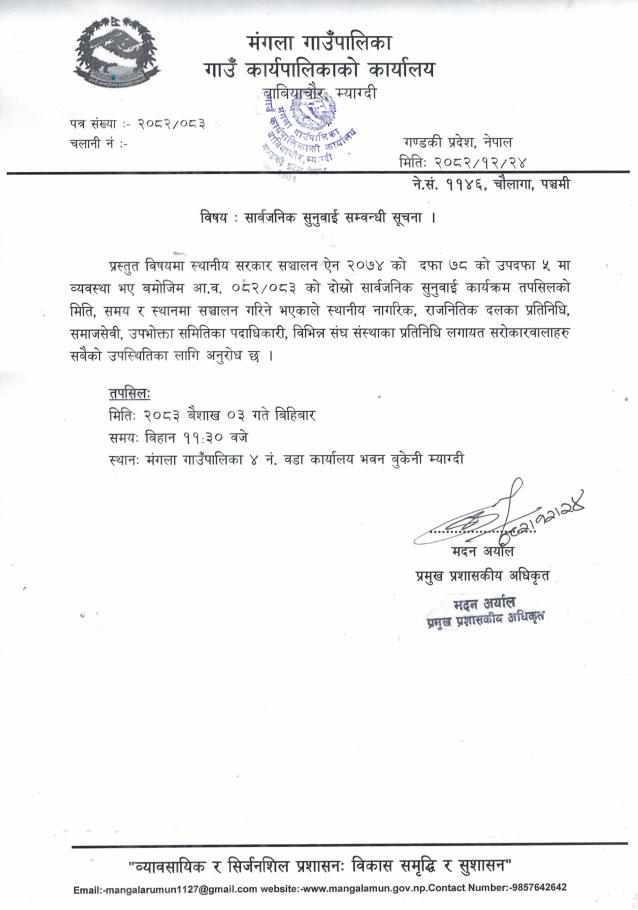 सार्वजनिक सुनुवाई सम्बन्धी सूचना ।