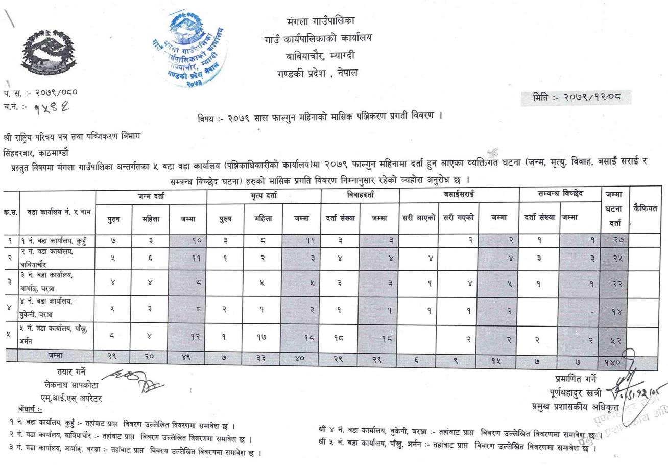 २०७९ साल फागुन महिनाको मासिक पञ्जिकरण प्रगति विवरण